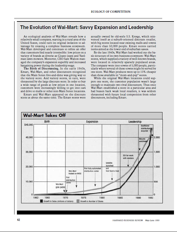 В отличие от IBM, история экосистемы розничной торговли Wal-Mart показала, как высшее руководство может принимать правильные меры предосторожности при расширении бизнеса. Вообще, Стадия 2 поощряет быстрое расширение, которое сдвигает конкурирующие экосистемы на край. Но администраторы также должны подготовиться к будущему лидерству и усилиям на следующем этапе. Для этого компаниям необходимо тщательно контролировать отношения с клиентами и основные центры ценностей и инноваций. Кроме того, они должны развивать отношения со своими поставщиками, которые не позволят последователям стать лидерами на третьем этапе.